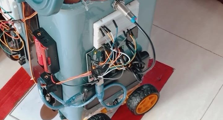 - Trash Sorting: An inductive proximity sensor identifies the type of waste (metal or non-metal). A servo motor then directs the trash into the appropriate room for segregation.