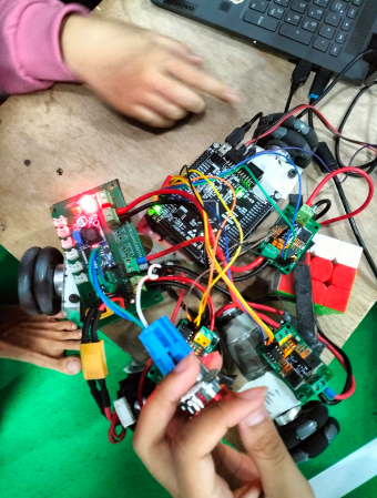 - For kinematics and movement, i implemented calculation for 3 wheels omni and PID control.